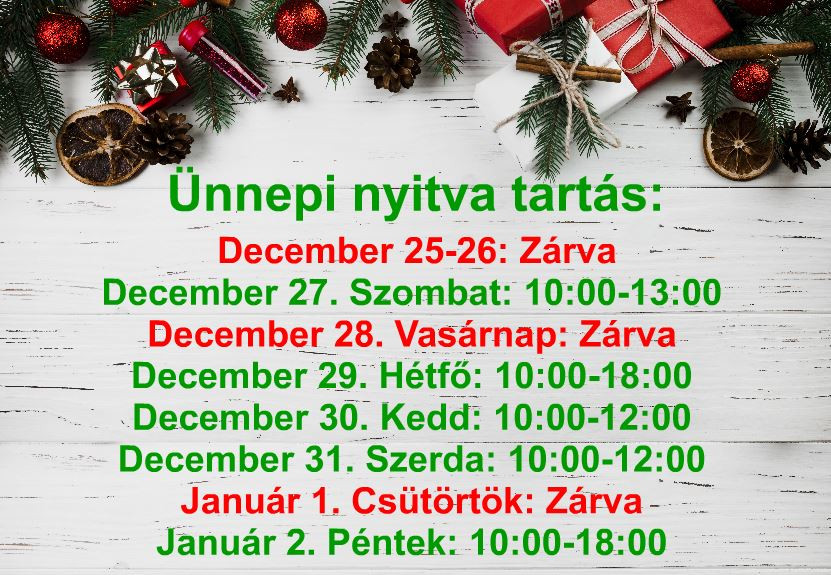 A két ünnep között az alábbiak szerint leszünk nyitva!