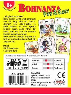 A Bohnanza Fun & Easy egy egyedülálló játék a fiatalabb babkereskedők számára. Még a játékban szereplő babok is fiatalos külsőt kaptak: Van itt Rocker bab, Hamburgerimádó bab, és így tovább.